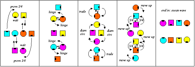 thru mit den auf sie zukommenden Tänzern, während die ends