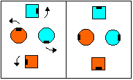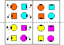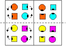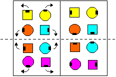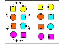 Jeder dreht am Platz eine Vierteldrehung von seinem