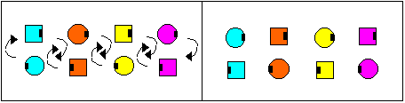 Callerlab Definition From Columns. Dancers facing each other on a diagonal (three pairs) step forward to join adjacent forearms, turn one-half (180°) and step forward to finish in a position vacated by the dancer who was originally adjacent to them in the column. Meanwhile, the #1 dancer in each column Runs into the position vacated by the adjacent #4 dancer who is doing the forearm turn. When done from right-hand columns, the dancers facing in turn by the right. When done from left-hand columns, the dancers facing in turn by the left hand. |