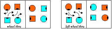 rechts stehenden Tänzer (hier: Damen) passieren sich linksschultrig auf ihrem lead