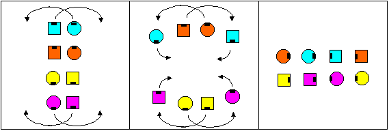 Cloverleaf (e.g., trade by formation): Those facing out do a Cross