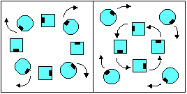Nun folgen meist weitere Anweisungen über auszulassende (= skip) oder zu passierende (= pass) Personen, z.B. skip one girl, pass your corner, meet your partner. Auch die Anzahl der Begegnungen kann variiert werden, z.B. the second time... |