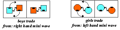 für Sight Caller: zusammen mit der Figur circulate (wird später gelehrt) ist trade eine ideale Figur, die zusammengehörenden Tänzer (key couples) zueinander zu bringen. |