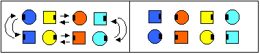 trade by ist eine sehr schnelle Figur, kommt viel zur Anwendung und ist beliebt, da sie keine Handhaltung erfordert. Für den Caller ist sie sehr nützlich, um die Tänzer schnell auf die andere Seite zu bekommen. Wenn Sie diese Figur lehren, nennen Sie diese am besten vorher nicht, sondern callen statt dessen aus der trade by Formation mehrmals: outsides partner trade - centers pass thru. Erst dann geben Sie diesem Tanzablauf den Namen und der Fall ist damit erledigt. Callen Sie dies aber auch aus sashayed Positionen! Natürlich sind (für die Etablierten) auch andere Formationen praktikabel, aber wir lehren hier für die Anfängertänzer! |