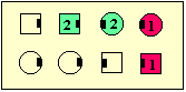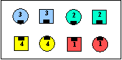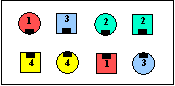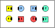 Natürlich können Sie auch die Paare 2 und 3, 3 und 4, oder 4 und 1 wählen. Wichtig ist nur: "wer" steht links und "wer" steht rechts. Dann müssen Sie aber die Nummerierungen (weiter unten) selbst ändern. Die Formationen, in welche die Tänzer zur Auflösung des Square gebracht werden müssen, können verschieden sein. Jeder macht das anders: Der eine wählt two faced lines, der andere ocean waves, der dritte double pass thru formations und der vierte lines und box formations. Der Square kann durchaus dabei in 90°, 180° oder 270° gedreht sein, das ist aber unwichtig, solange die Reihenfolge = sequence korrekt ist. Nachdem wir aber irgendetwas wählen müssen, entscheiden wir uns für die zwei folgenden Auflösungsformationen: