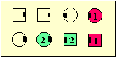 Danach überprüfen Sie zuerst, wo sich nun ihr primäres Paar befindet: Steht es außen als trailer, sind keine weiteren Maßnahmen anzuwenden. Steht es innen als leader: schicken Sie es durch zoom wieder nach außen, wo es hin soll. Anschließend lösen Sie die centers auf, wo sich nun Ihr sekundäres Paar befindet. Die Partner stehen sich gegenüber, sind aber hier zum besseren Verständnis nicht nummeriert! Bringen Sie ihren sekundären Herrn zu seiner corner lady.
