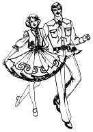 Dance Tanzveranstaltungen bieten eine reiche Auswahl. Petticoats: Dieses unumgänglich notwendige Requisit für die Damen bekommen Sie bei Fachhändlern, welche bei größeren Tanzveranstaltungen einen Verkaufsstand einrichten. Sie können auch direkt in USA bei entsprechenden Herstellern bestellen, wobei Sie aber Zollgebühren mit einkalkulieren sollten. Ziehen Sie am besten erfahrene Damen aus dem Klub zu Rate und sparen Sie nicht an jeder Mark. Die Ausgabe für einen guten Petticoat lohnt allemal, er ist viel im Gebrauch, soll etwas darstellen und viele Wäschen, auch in der Waschmaschine, schadlos überstehen. Der Petticoat sollte ca 1 inch = 2,54cm kürzer sein als das Kleid, das etwa knielang sein soll. Zur Aufbewahrung und zum Transport dient ein luftdurchlässiger Stoffsack oder zur Not auch ein Kopfkissenbezug, jedoch keine Plastiktüte. Pettipants: Zu den Petticoats gehören als passende Unterwäsche die sogenannten Pettipants: rüschenbesetzte Höschen, neutral oder passend zum Kleid. Für den Anfang tut es aber auch ein farbiger Slip über der Strumpfhose. Schuhe: Damen: am besten wählen Sie Schuhe ohne hohe Absätze, um Drehungen und Richtungsänderungen schnell und ohne Stolpern ausführen zu können. Kleine Absätze sind durchaus gestattet, sofern dadurch Drehbewegungen nicht behindert werden. Extrem hochhackige Schuhe und Schuhe mit Plateusohlen sollen aus Sicherheitsgründen und wegen Verletzungsgefahr nicht getragen werden. Hallenwarte und Veranstalter fürchten, ja verbieten sogar diese „Pfennigabsätze“, die nahezu jeden Bodenbelag ruinieren. Springerstiefel in Verbindung mit Petticoats sind ein Brechreiz - da helfen die schönsten Beine nichts! Verboten sind: rückenfreie Kleider bzw. Zweiteiler, achselfreie bzw. ärmellose T-shirts.